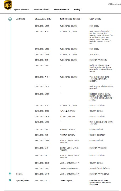 Stinvlka Jsem na tom asi ještě hůř, byť nejde o parfémy. Začátkem prosince jsem si objednala něco z USA s tím, že to půjde přes UK. Z UK odesílali bohužel až v lednu po Brexitu. Nedošlo mi, že se to nestihne a problém je ještě ten, že ten UK obchod nezasílá do ČR, takže jsem využila službu na přeposílání balíků z Německa. Teď je balíček někde v Německu a je u něj status "vyšší moc". A já vůbec nevím, jestli mě z té přeposílací služby budou kontaktovat ohledně celního odbavení; jak to bude, když adresa je jen číslo boxu v nějakém depu. Psala jsem jim, ale radili mi počkat, co se bude dít