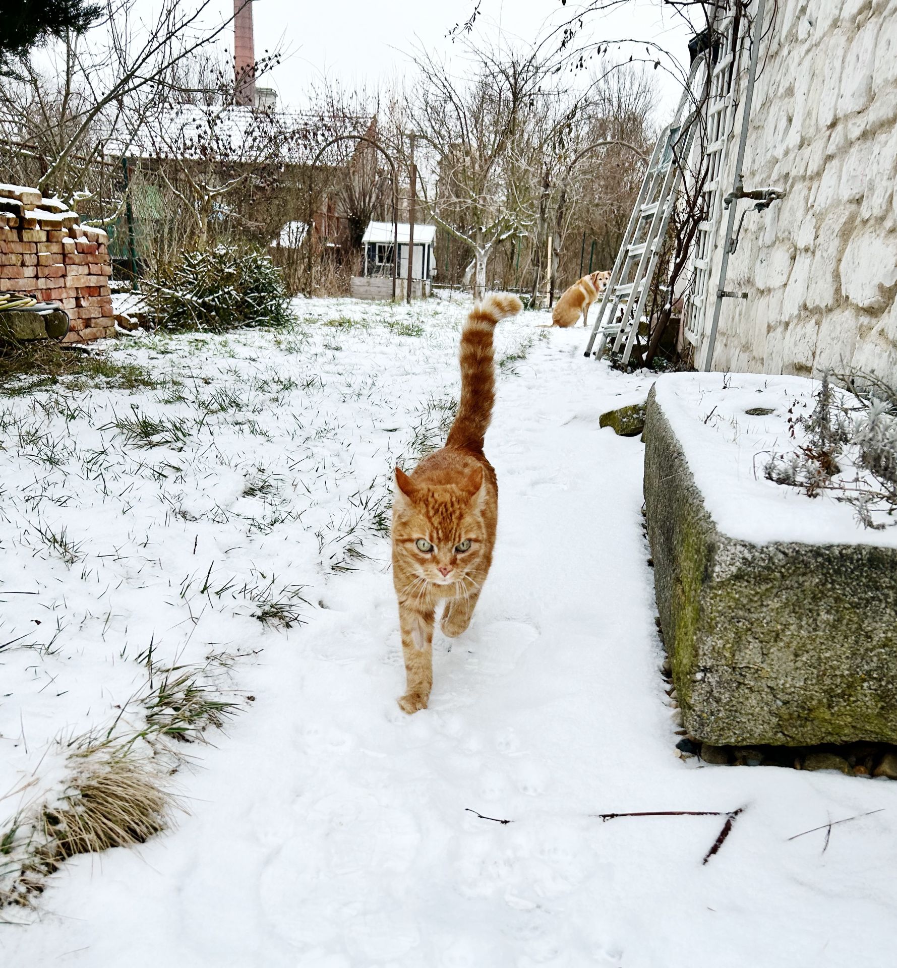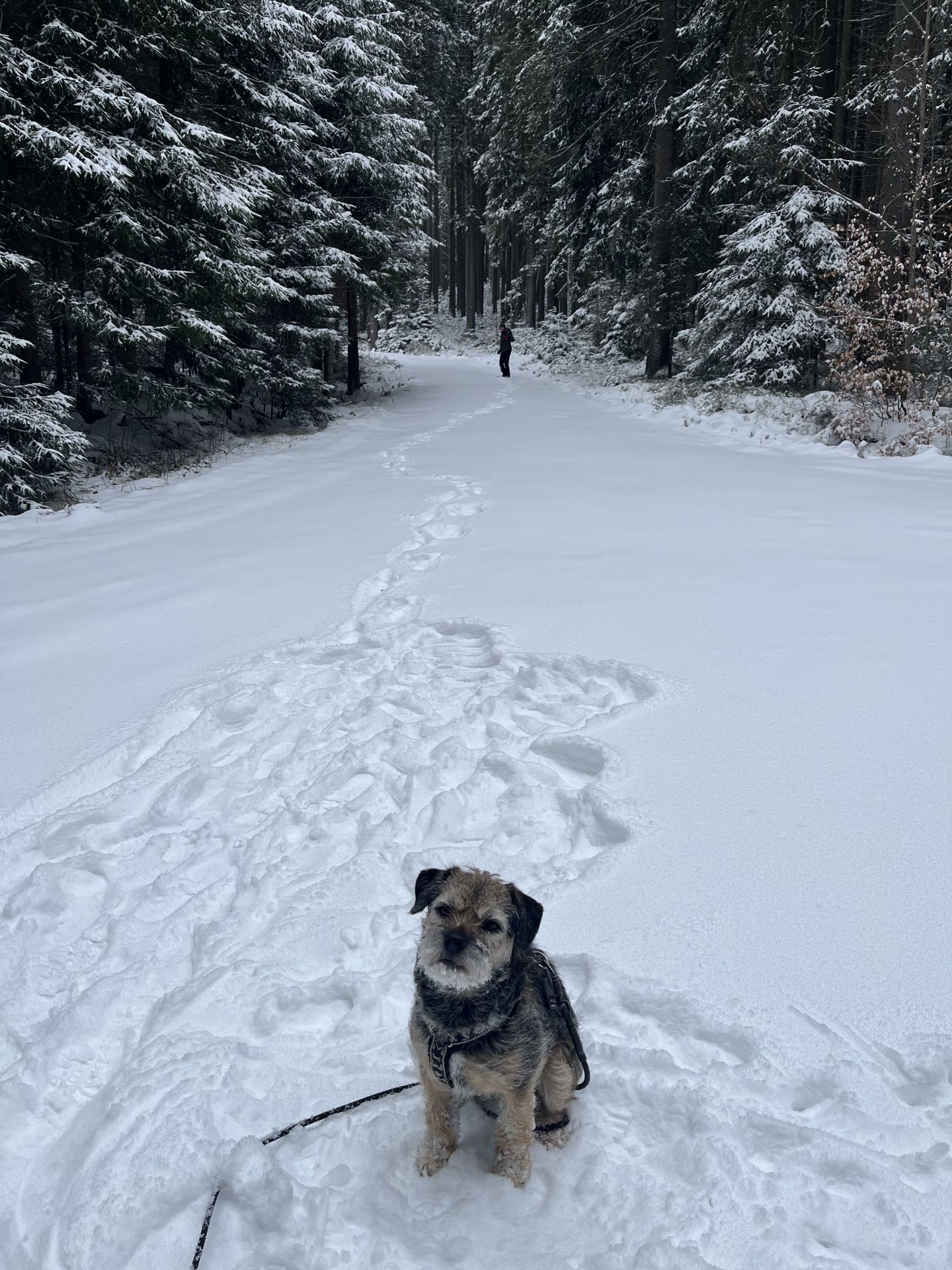 Psice sníh miluje, ale minulý týden musela se mnou do práce. Čumák je šedý od blbě utřeného jogurtu, nirmálně je černy jak uhel.