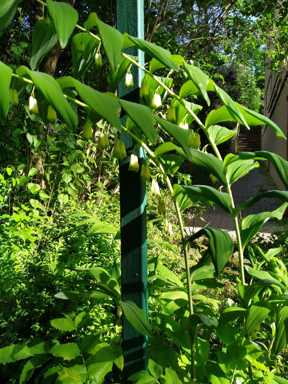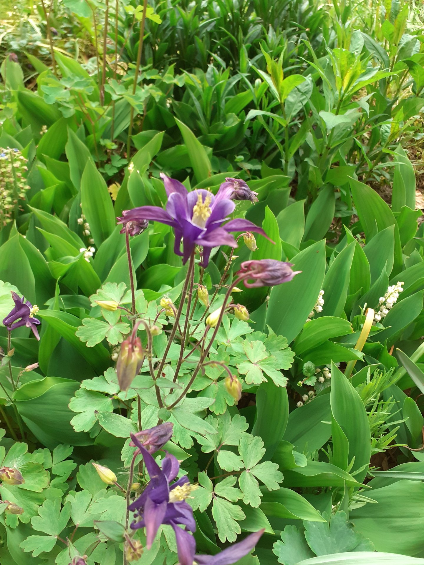 konvalinky mi už taky kvetou... no a tohle vypadá jako obří konvalinky poskládaný trochu jinak, a nevim, jak se to jmenuje (odkopek od sousedky)